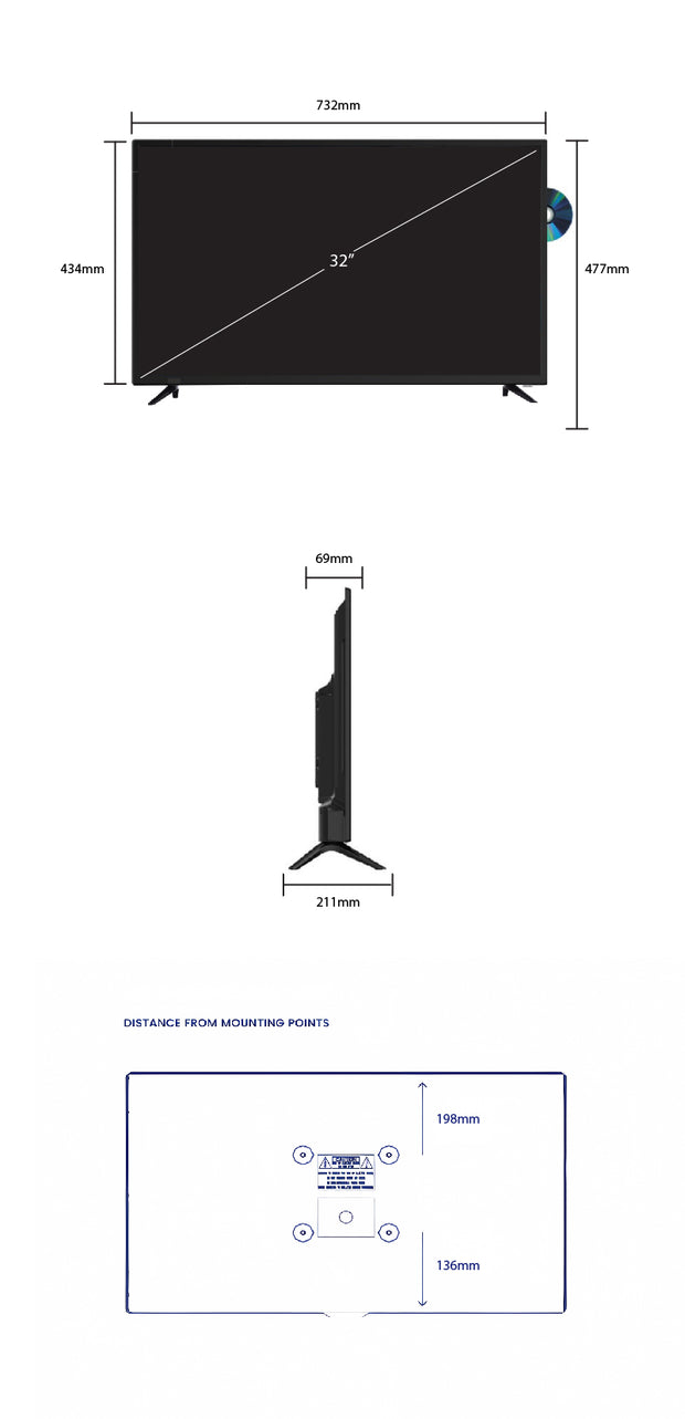 ENGLAON 32'' Full HD Android Smart 12V TV with Built-in DVD player, Chromecast & Bluetooth