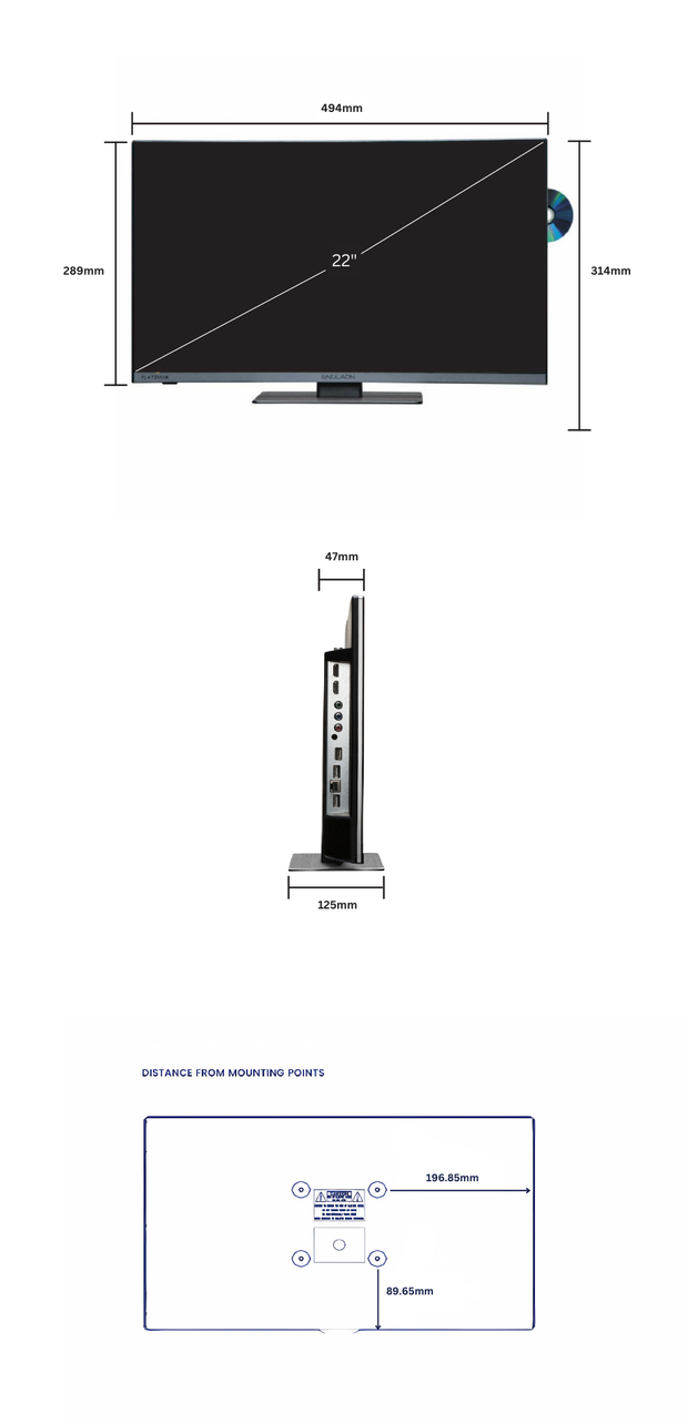 ENGLAON Frameless 22'' Full HD Google Smart 12V TV With Built-in DVD player and Chromecast